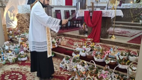 Na tradycyjnym święceniu pokarmów spotkali się wierni z parafii Chrystusa Króla w Strzelcach Małych w gminie Masłowice