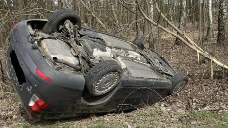 Do wypadku samochodowego doszło w Wąglinie w gminie Gomunice. Volvo zjechało do rowu i dachowało