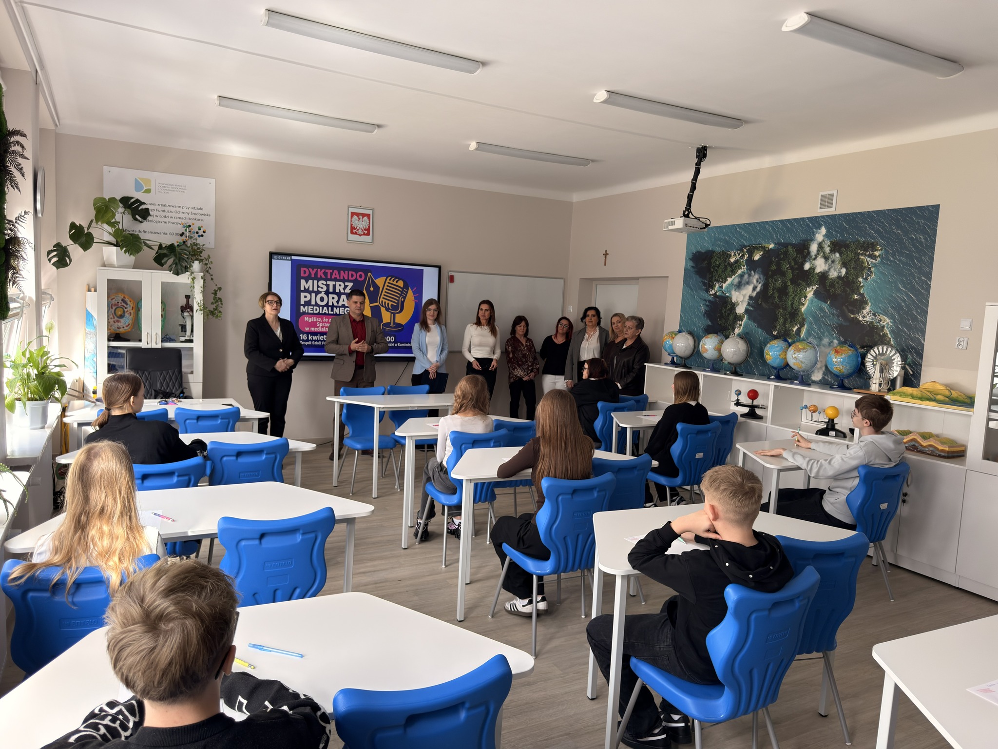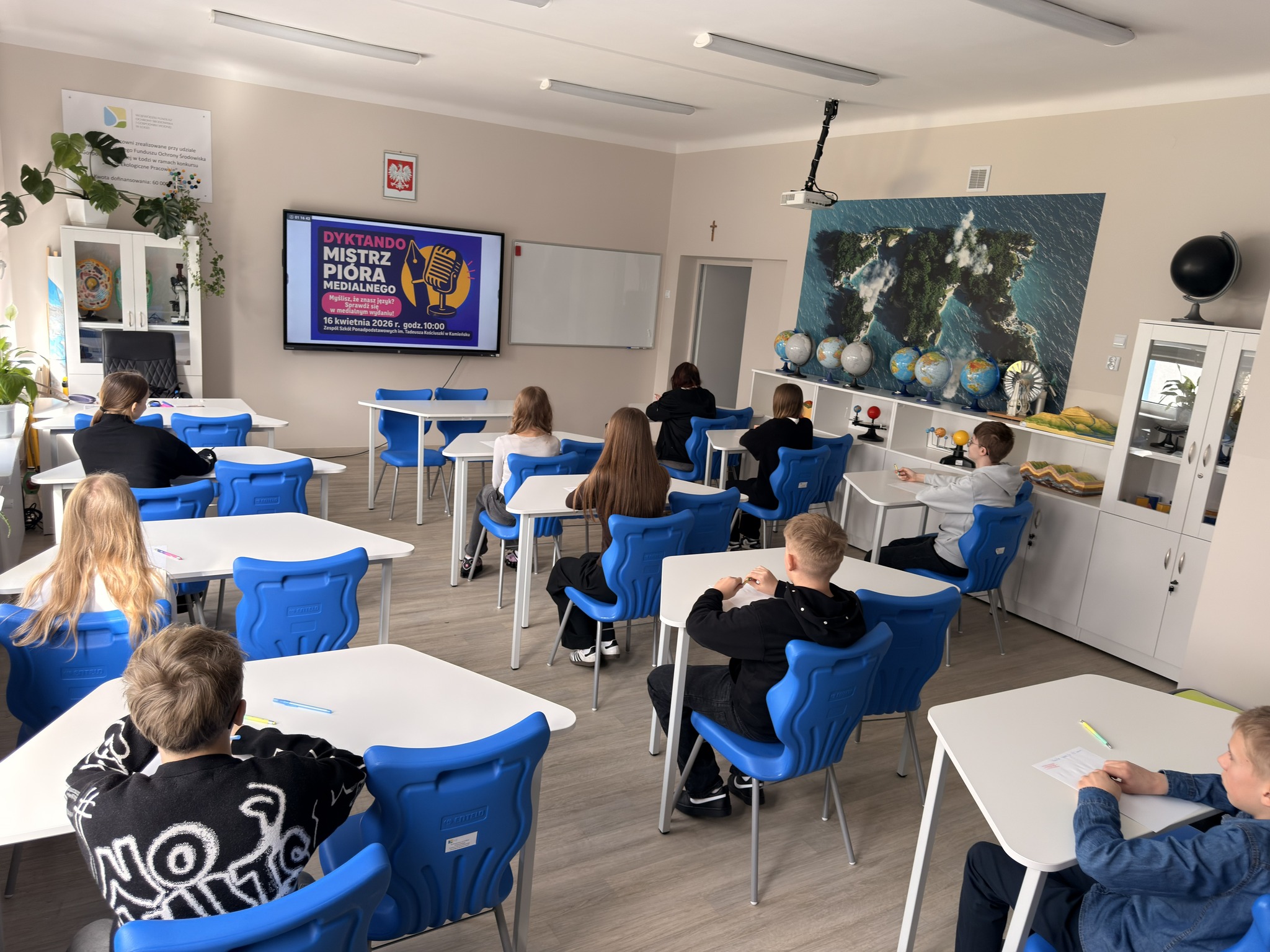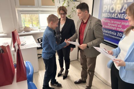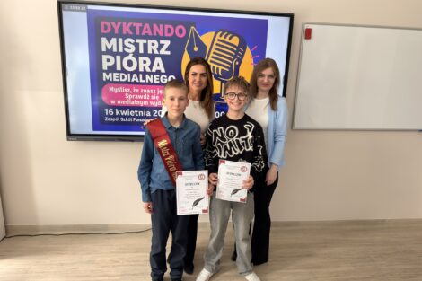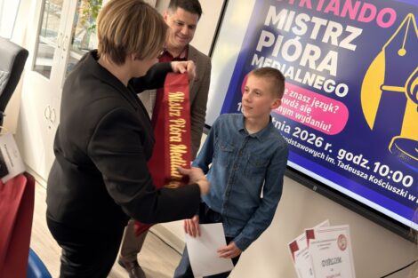 Spotkanie z językiem polskim stało się okazją do sprawdzenia swoich umiejętności w medialnej odsłonie w Zespole Szkół Ponadpodstawowych w Kamieńsku! Uczniowie klas 7 i 8 szkół podstawowych zmierzyli się w międzyszkolnym dyktandzie „Mistrz Pióra Medialnego”, udowadniając, że ortografia może być nie tylko wyzwaniem, ale też świetną zabawą.