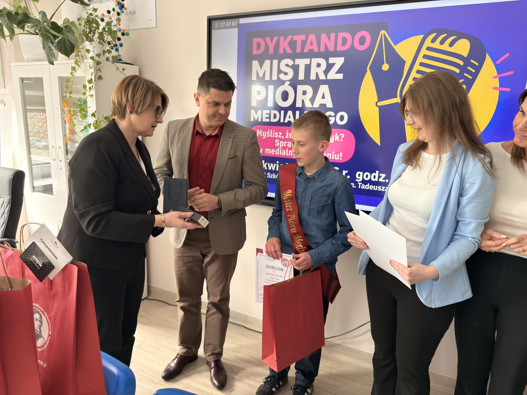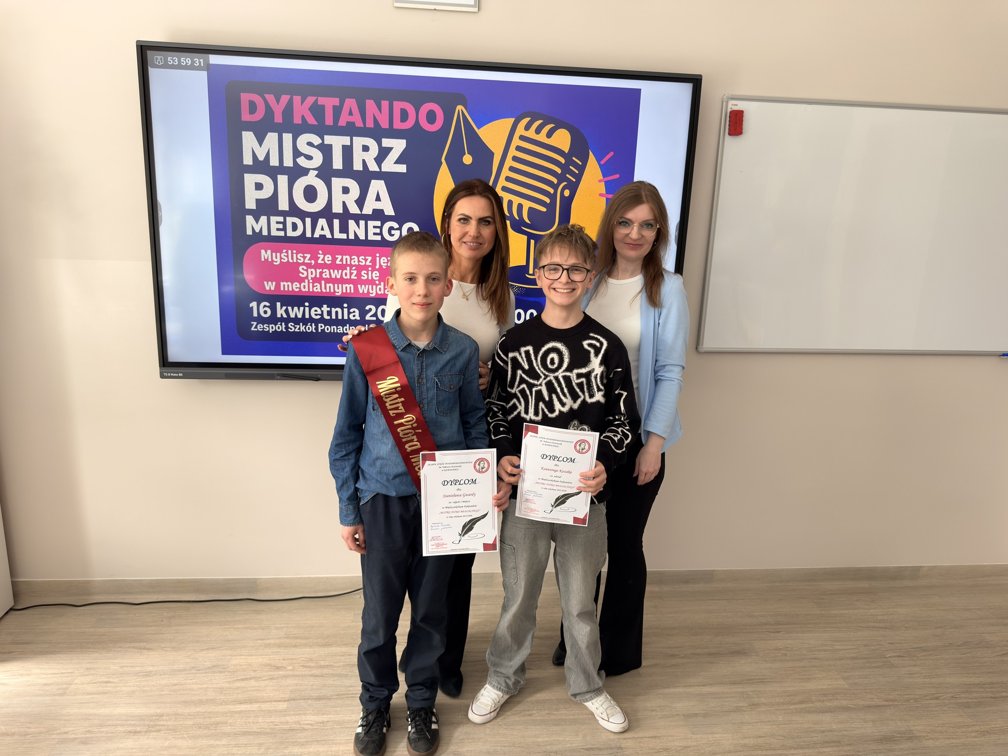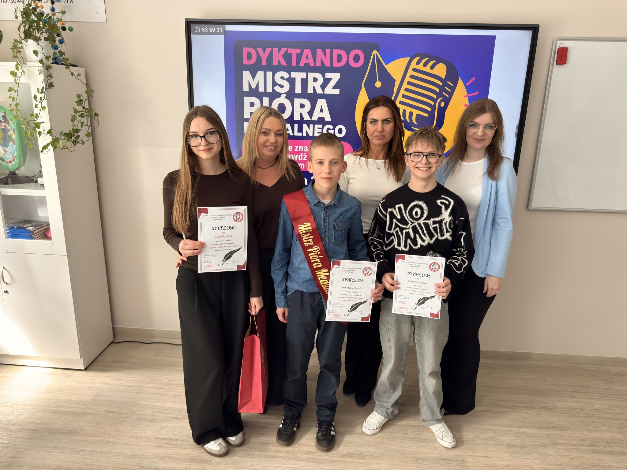 Spotkanie z językiem polskim stało się okazją do sprawdzenia swoich umiejętności w medialnej odsłonie w Zespole Szkół Ponadpodstawowych w Kamieńsku! Uczniowie klas 7 i 8 szkół podstawowych zmierzyli się w międzyszkolnym dyktandzie „Mistrz Pióra Medialnego”, udowadniając, że ortografia może być nie tylko wyzwaniem, ale też świetną zabawą.