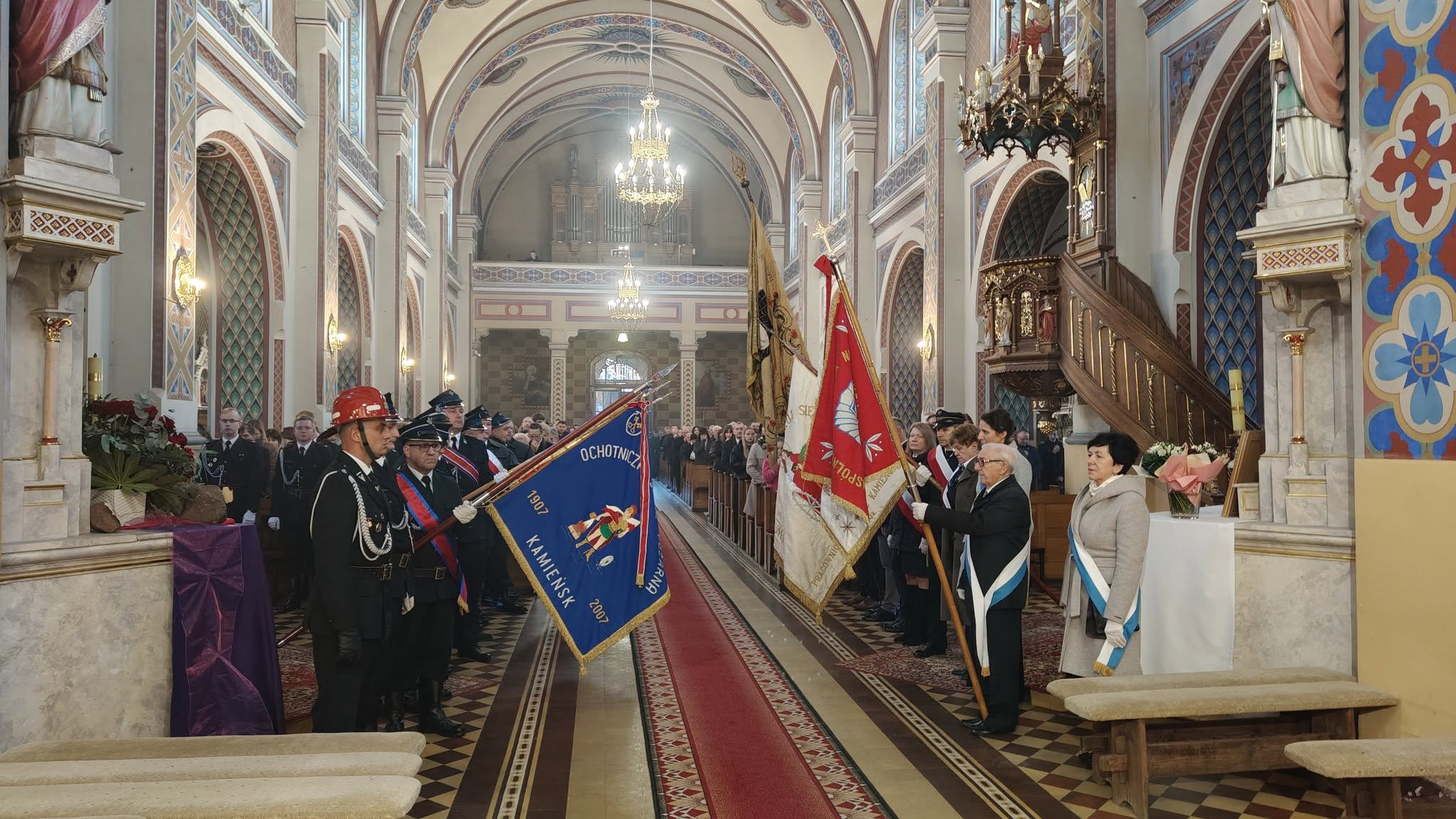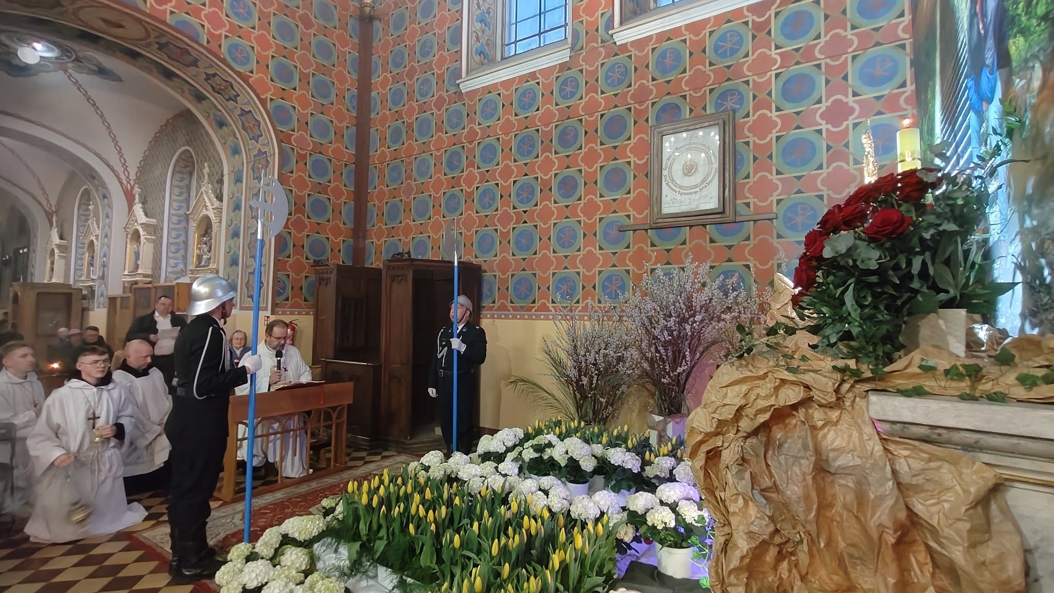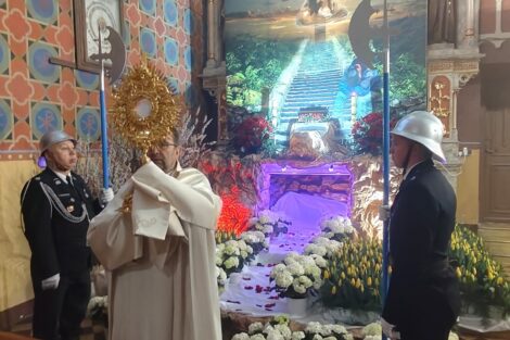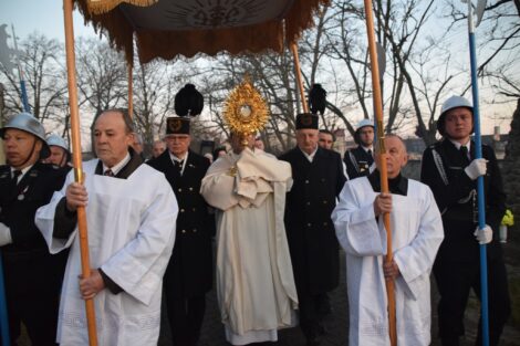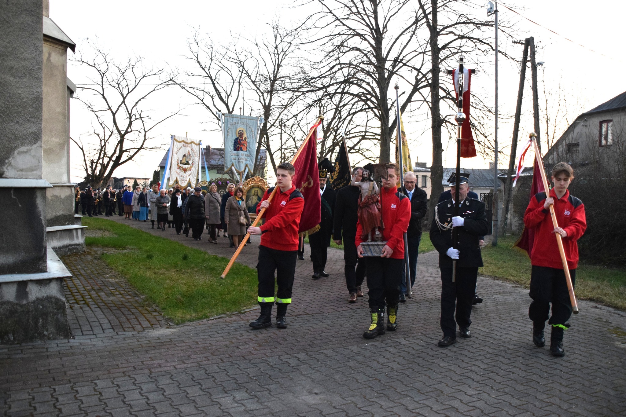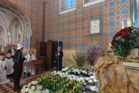 – W procesji niesiona była przez strażaków figura zmartwychwstałego Chrystusa na pamiątkę zwycięstwa życia nad śmiercią, dobra nad złem, nadziei nad rozpaczą, którą umieszczono następnie w prezbiterium aż do uroczystości Wniebowstąpienia. Obok niej również postawiono krzyż z czerwoną stułą, która jest symbolem Chrystusa-Kapłana – czytamy na Facebooku parafii pw. św. Apostołów Piotra i Pawła w Kamieńsku.
