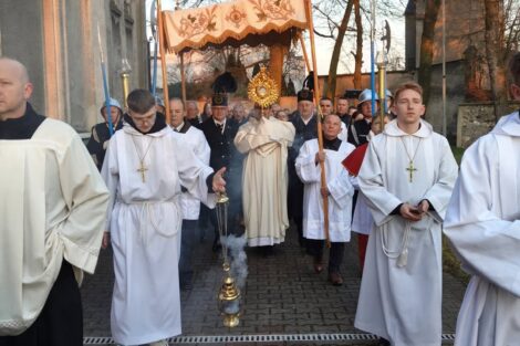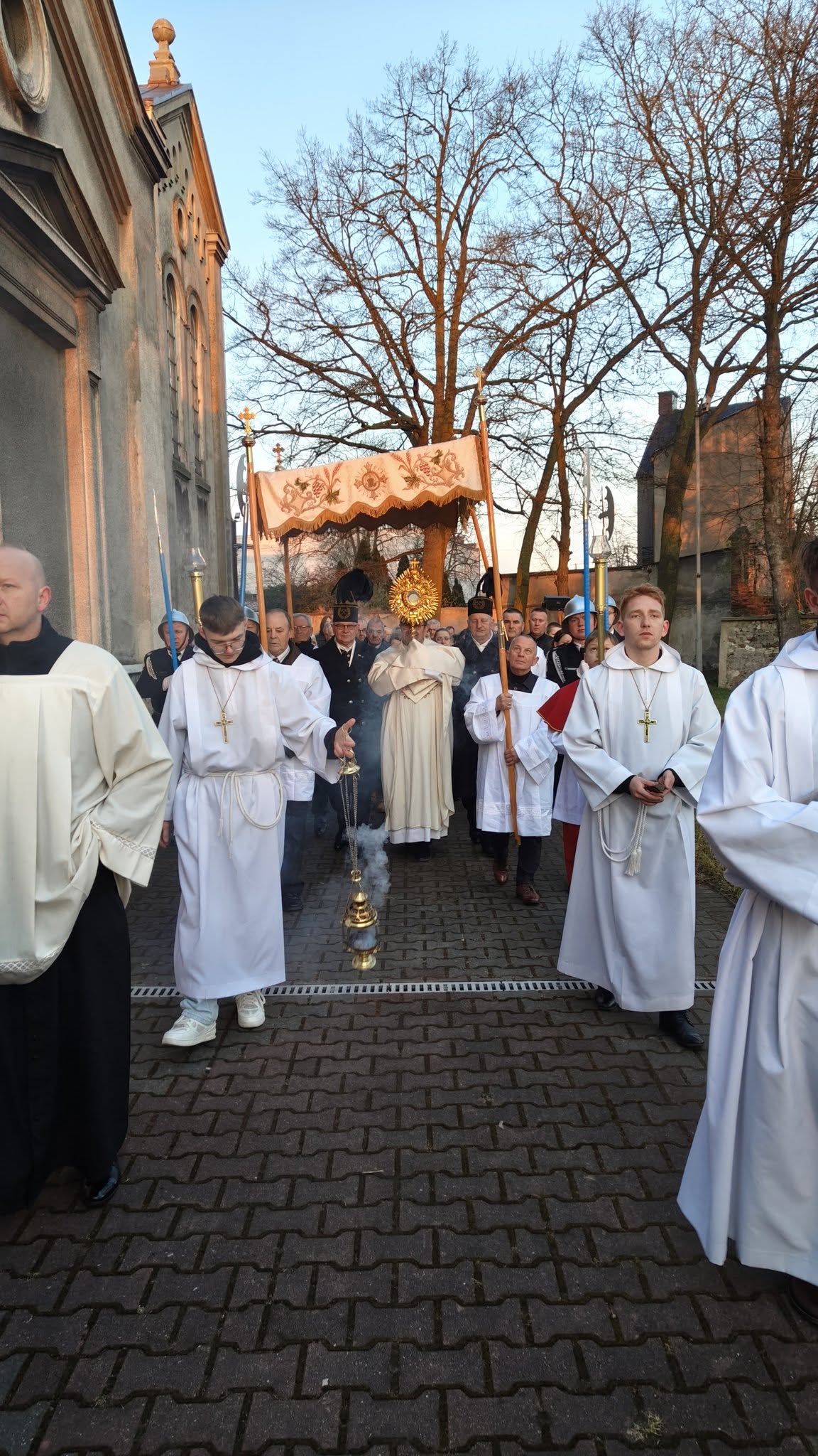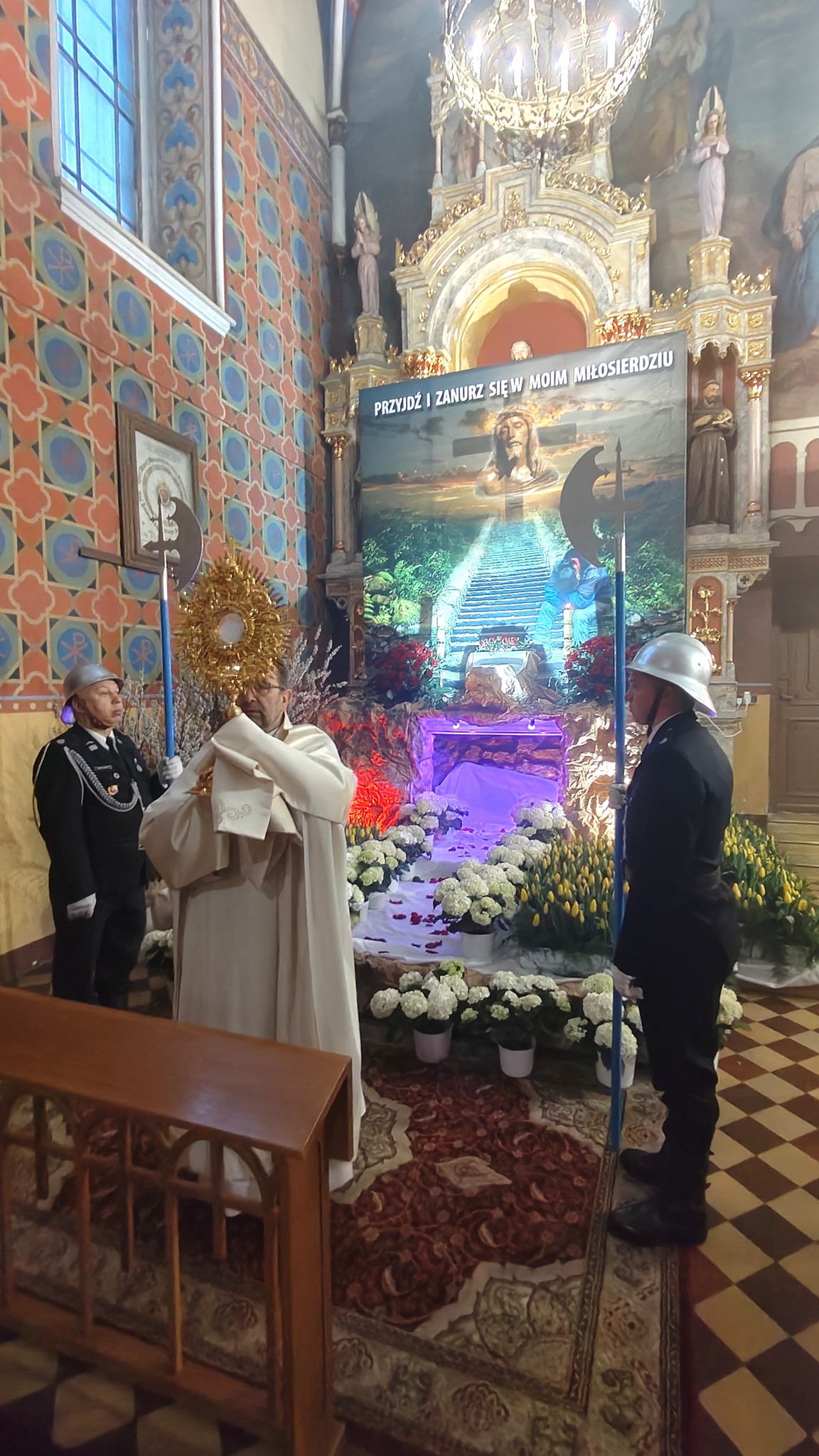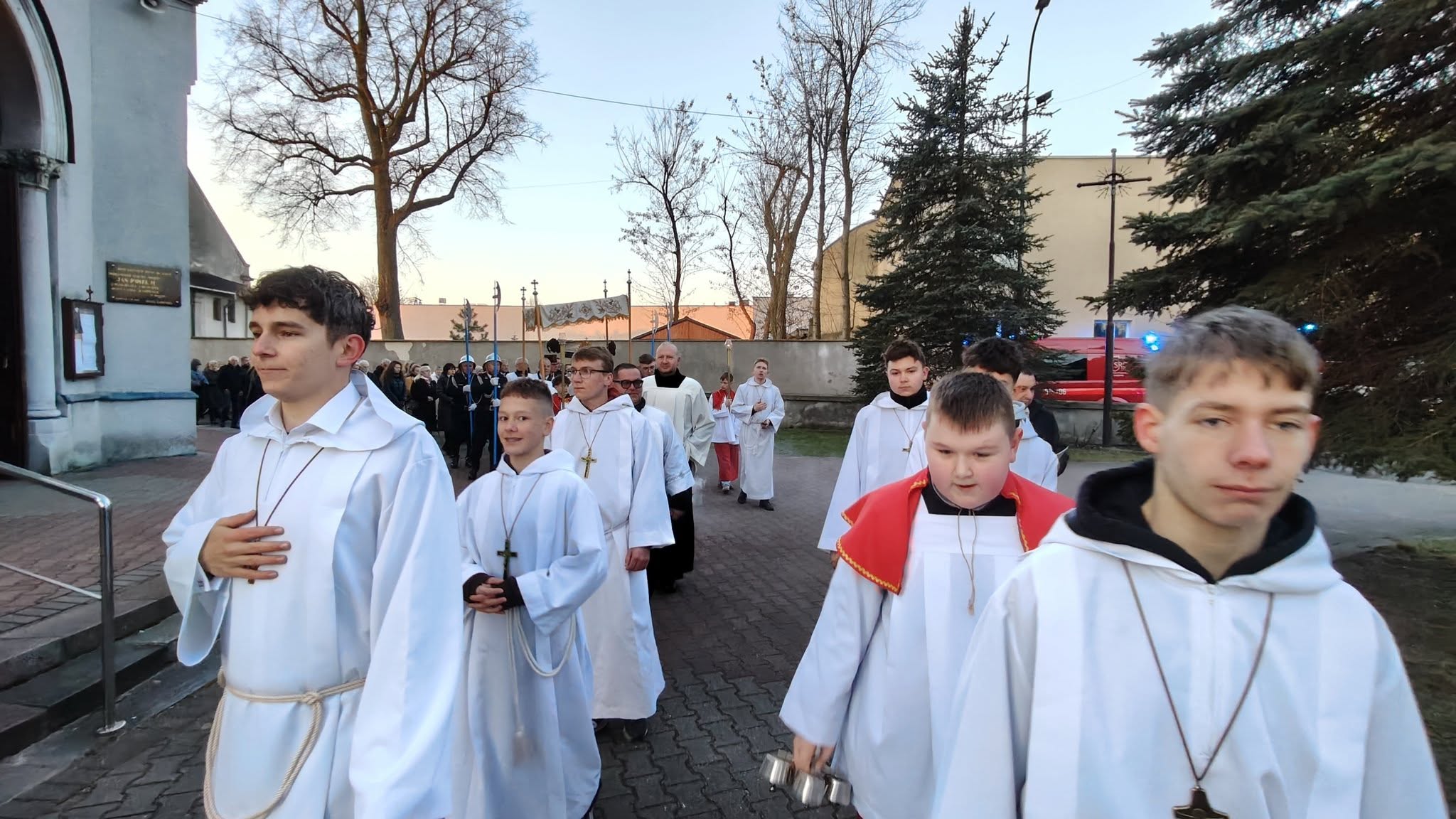 – W procesji niesiona była przez strażaków figura zmartwychwstałego Chrystusa na pamiątkę zwycięstwa życia nad śmiercią, dobra nad złem, nadziei nad rozpaczą, którą umieszczono następnie w prezbiterium aż do uroczystości Wniebowstąpienia. Obok niej również postawiono krzyż z czerwoną stułą, która jest symbolem Chrystusa-Kapłana – czytamy na Facebooku parafii pw. św. Apostołów Piotra i Pawła w Kamieńsku.